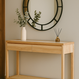Perfecta para recibidores, pasillos, salones o dormitorios donde se requiera una pieza de mobiliario que combine almacenamiento funcional con diseño premium. Los dos cajones ofrecen espacio discreto para llaves, correspondencia, accesorios y objetos personales, manteniendo el orden sin comprometer la estética.
