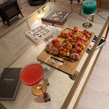 Protege el mármol sin ocultarlo — el vidrio templado de 8 mm actúa como escudo transparente sobre la superficie de mármol: repele manchas de vino, aceite, café y líquidos del uso cotidiano que en una mesa de centro de mármol sin protección penetrarían la piedra en minutos. La belleza de las vetas queda completamente visible desde arriba, como si el vidrio no existiera.