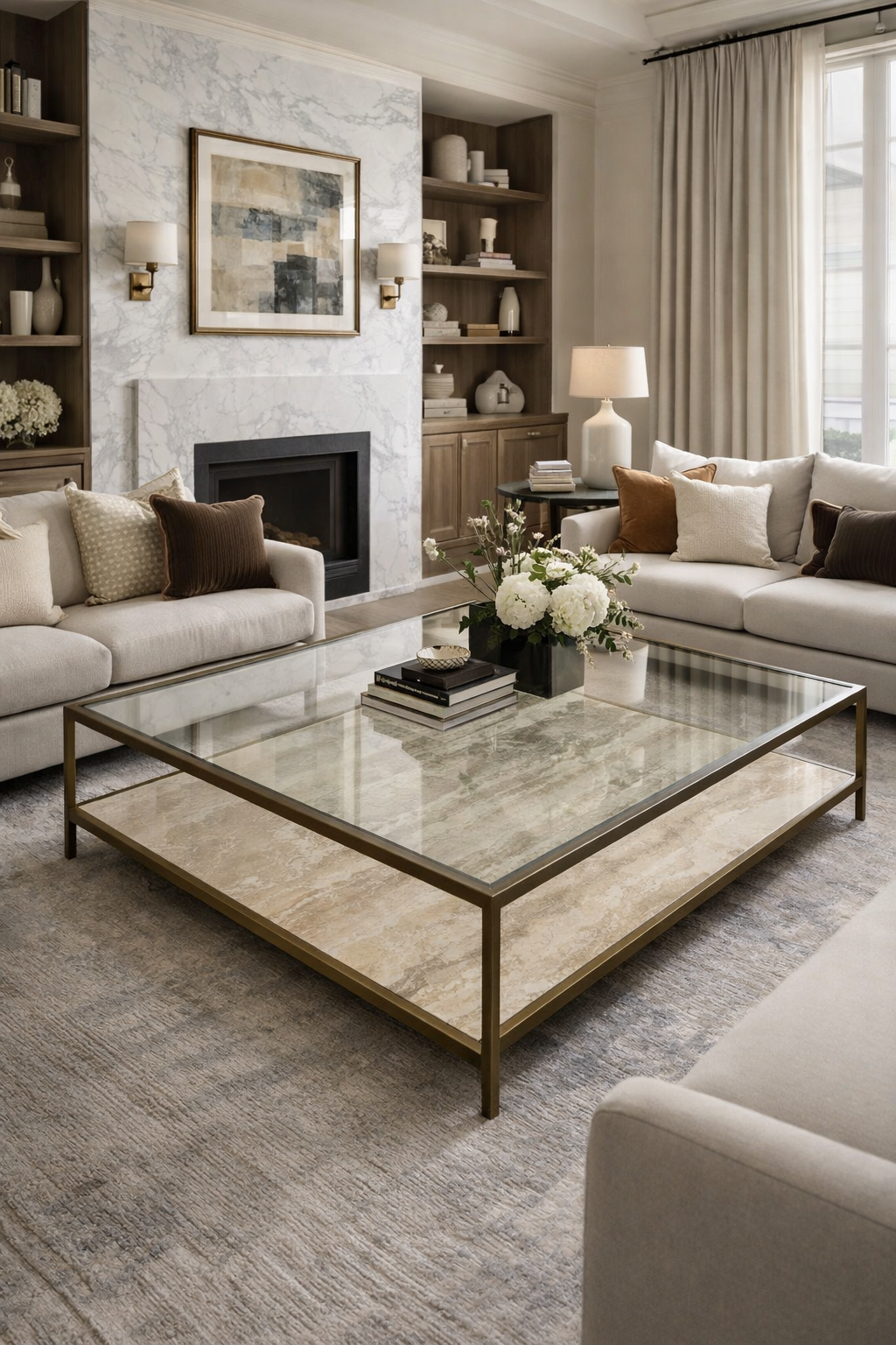 Mesa de centro de mármol con cubierta de vidrio templado — la solución más inteligente para proteger el mármol sin sacrificar su belleza. La Reina Isabel es una mesa de centro moderna que resuelve el dilema más frecuente del mármol en salas de estar con uso intensivo: cómo disfrutar sus vetas y su presencia visual sin exponerlo a manchas, rasguños ni marcas de uso. La respuesta es una cubierta de vidrio templado de 8 mm que protege la superficie de mármol desde arriba, dejándola completamente visible. Una mesa de centro nórdica de carácter clásico con solución contemporánea.