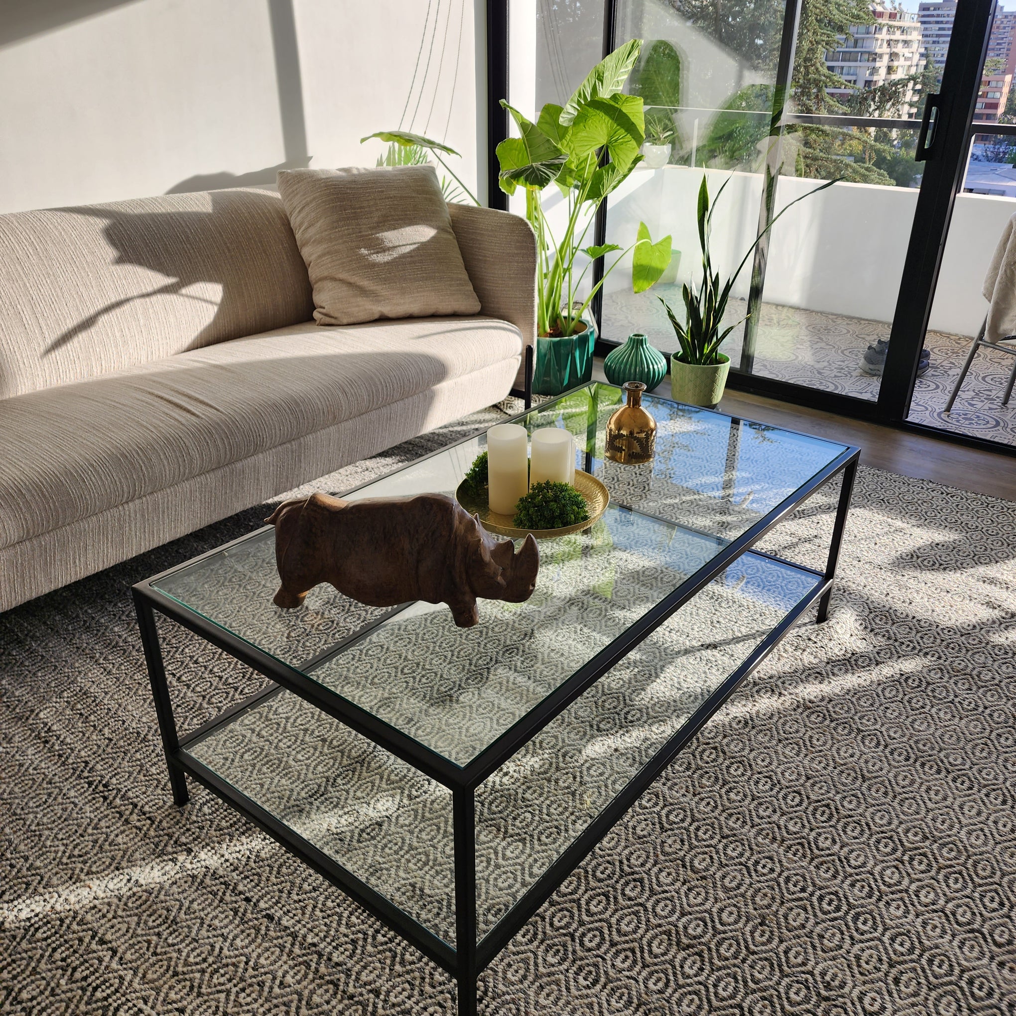 Con una doble cubierta de vidrio, esta mesa de centro es una combinación perfecta de estilo y funcionalidad. Puedes utilizar la superficie superior para colocar tus bebidas, libros, revistas y objetos decorativos, mientras que la inferior es ideal para guardar objetos más grandes o simplemente para crear un espacio extra de almacenamiento.